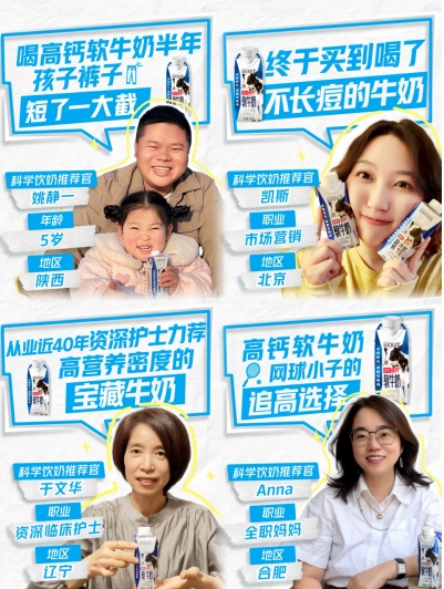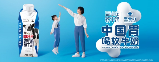 高钙软牛奶作为核心拳头产品,直击9亿钙缺乏群体「高效补钙」的需求,实现了每盒含500mg高钙的高营养价值,其钙量相当于约50杯豆浆,搭配维生素D的黄金配比提升钙吸收率;通过在软牛奶中添加植物原料玉米芯提取低聚木糖研发出益生元软牛奶,不仅兼顾了乳糖不耐的缓解与肠胃健康的强化,也体现三只小牛从“被动适应中国胃”向“主动改善中国胃”的思维迈进。