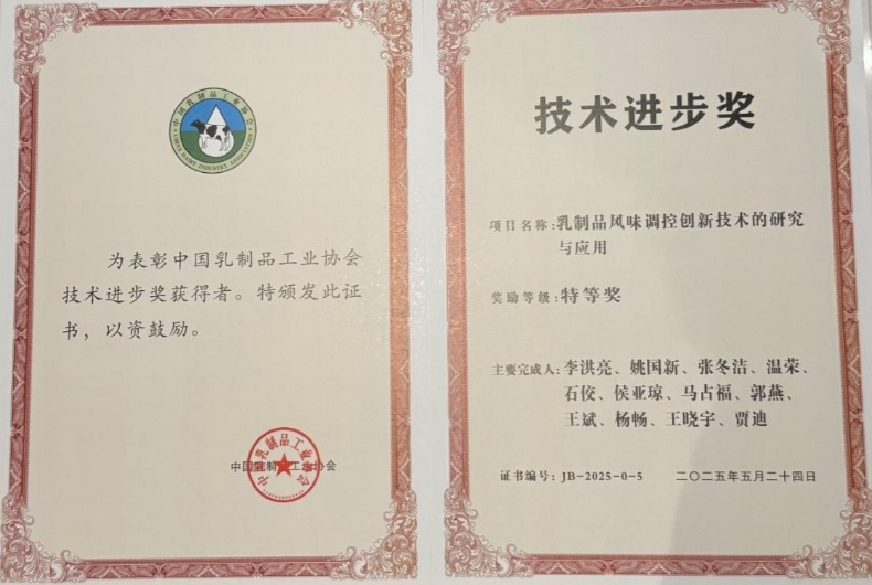 在本届大会上,蒙牛携一系列的亮眼成果荣获9项中国乳制品工业协会技术发明奖及技术进步奖,赢得了行业和协会的认可,其中,蒙牛“乳制品风味调控创新技术的研究与应用项目”荣获技术进步奖特等奖。